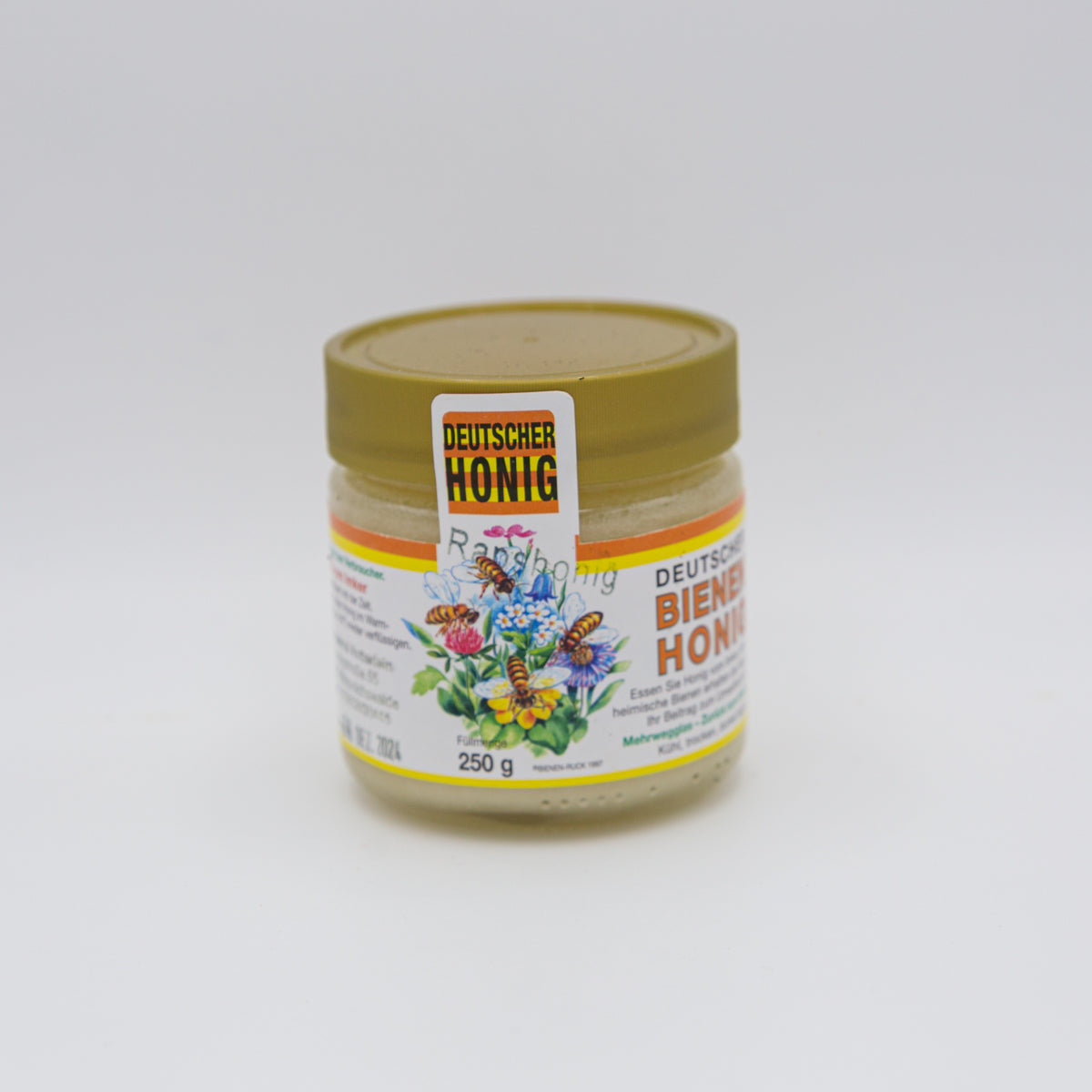 Dieser hellgelbe Honig stammt aus den ausgedehnten Rapsfeldern der Region.